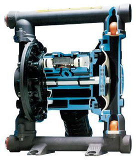 1、氣動(dòng)雙隔膜泵的原理:   氣動(dòng)雙隔膜泵采用壓縮空氣、氮?dú)饣蛱烊粴庾鳛閯?dòng)力。主定向(氣動(dòng))控制閥將壓縮空氣分配至氣體腔室,向隔膜的內(nèi)表面上施加均勻壓力。同時(shí)排出的氣體從泵另一側(cè)后方通過(guò)氣閥組件導(dǎo)向端口排出。   氣動(dòng)雙隔膜泵通過(guò)行程機(jī)械拉動(dòng)吸入隔膜的移動(dòng)氣動(dòng)雙隔膜泵的內(nèi)板與對(duì)準(zhǔn)的驅(qū)動(dòng)柱塞發(fā)生接觸,移動(dòng)導(dǎo)向閥芯。導(dǎo)向閥激活后,便向主定向氣閥的另一端發(fā)出壓力信號(hào),氣動(dòng)雙隔膜泵使壓縮空氣方向改向內(nèi)部腔室的另一側(cè)如此反復(fù)運(yùn)動(dòng)完成介質(zhì)的連續(xù)輸送。 2、氣動(dòng)雙隔膜泵的特點(diǎn): 氣動(dòng)雙隔膜泵的特點(diǎn)和單隔膜泵的類似,只不過(guò)雙隔膜泵指雙吸液腔,單隔膜泵就一個(gè)吸液腔。但是,隔膜泵壓力無(wú)法提高,被氣源壓力限制。隔膜泵流量通常不會(huì)太大,多數(shù)應(yīng)用在小系統(tǒng)中。跟傳統(tǒng)用在大流量的離心泵還是有使用場(chǎng)合上的不同。